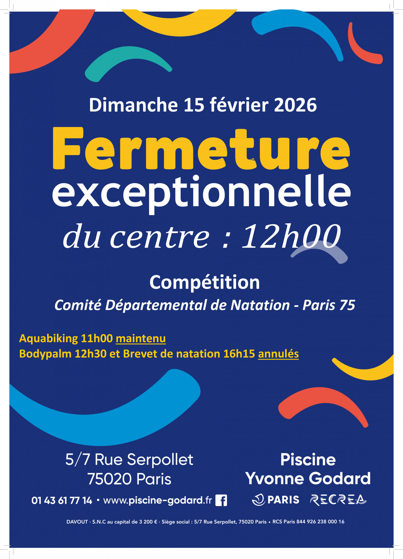 Fermeture Exceptionnelle 12h00 - Dimanche 15 février 2026